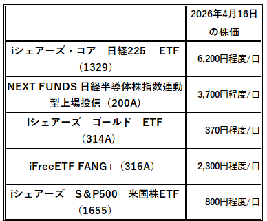 ・日経、日本半導体、ゴールド、米国テクノロジー、メジャーな米国ETFとバランスよく。