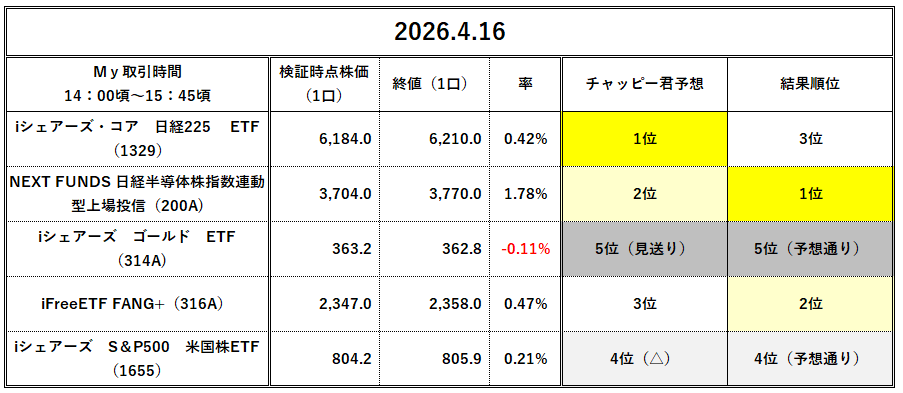 4位、5位を見事的中。特に5位のゴールドETFは見送り予想はお見事。1位~3位は誤差あるけどそれぞれ見事な値上がり率でした。