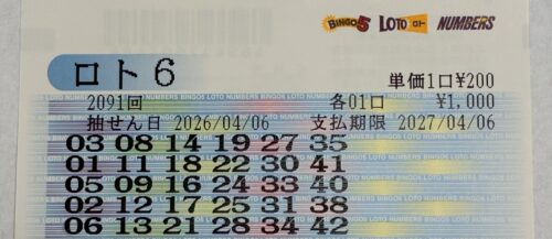 私の購入したロト6。